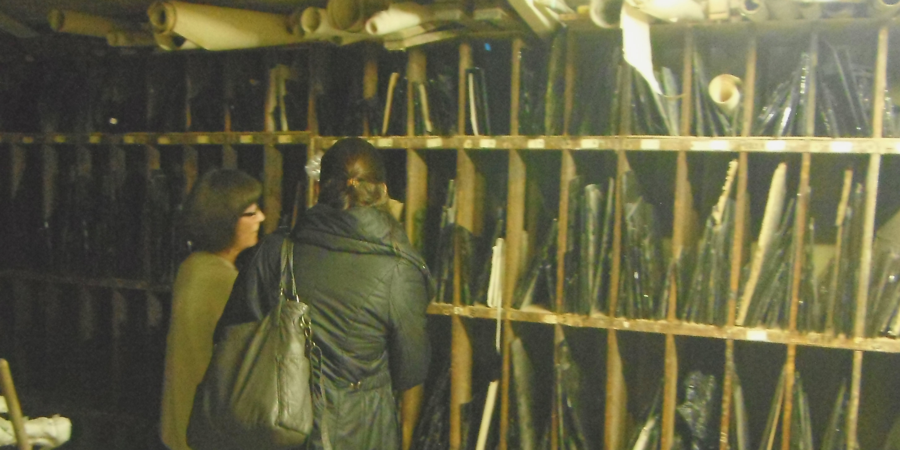 Sensing my interest, Caroline suddenly pulled out an ancient glass-plate (a measuring tool used by glass artists)… which clearly had once belonged to Margaret Rope – for, on one side, was carved in the letters R-O-P-E.