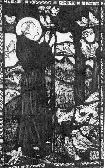 St Hugh Letchworth St Francis glass 2First, though it’s an early piece, it really is important; it shows astonishing sureness of touch.